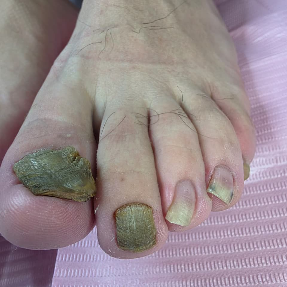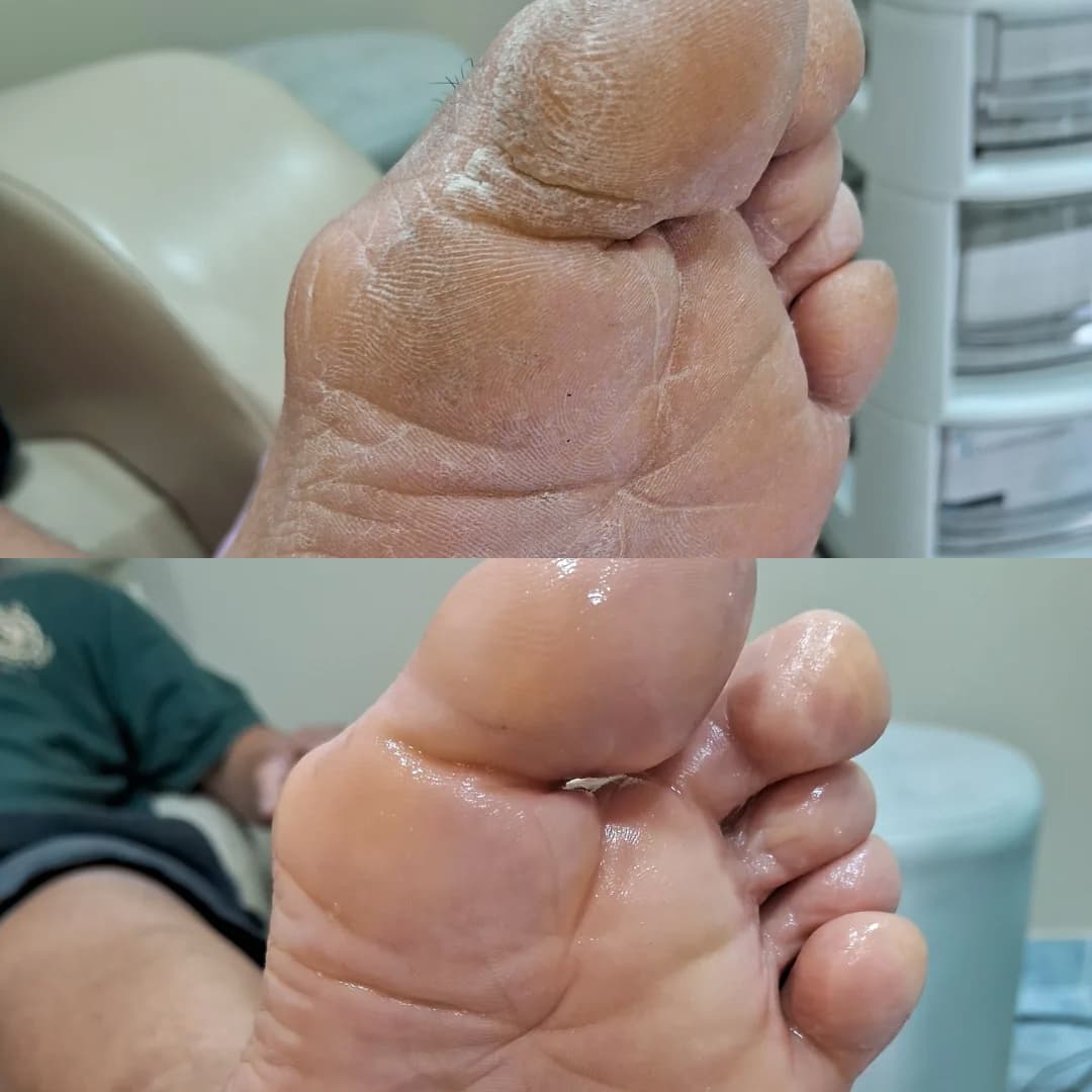 Cuidado profesional del pie que incluye limpieza de uñas, eliminación de durezas y revisión del estado general de la piel y las uñas. Un tratamiento ideal para mantener los pies sanos y prevenir futuras molestias.